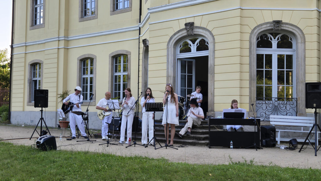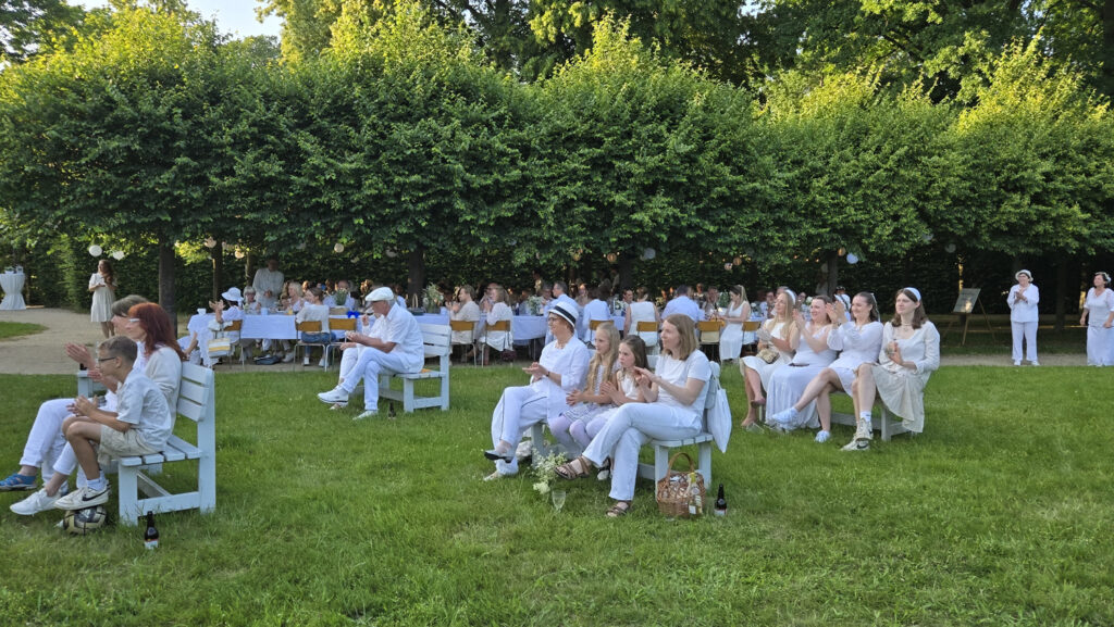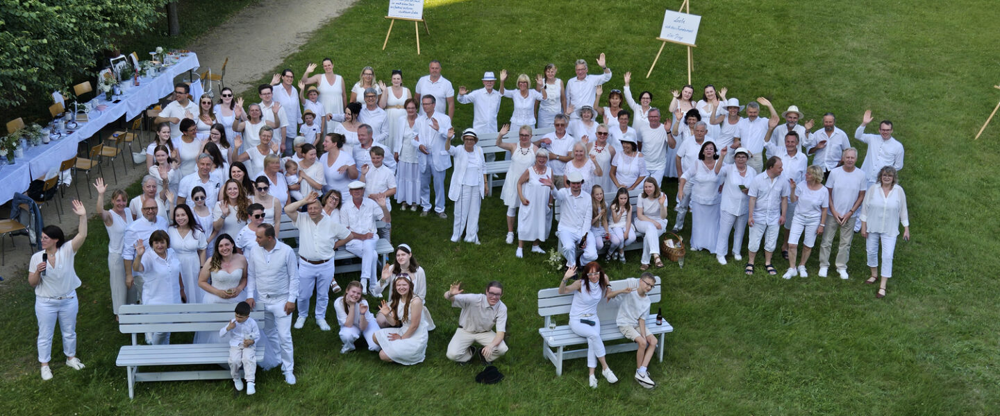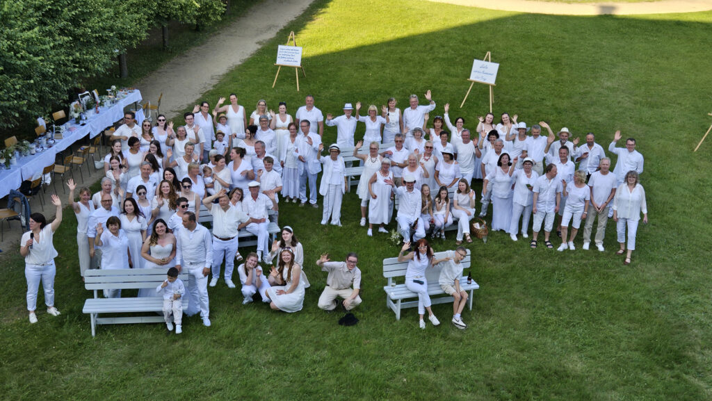 Stell dir vor: Ein strahlender Sommertag im Juni 2025, die Sonne scheint warm vom Himmel, und im Königshainer Schlossgarten findet ein ganz besonderes Dinnerpicknick statt – ganz in Weiß! Rund 80 fröhliche Gäste haben sich versammelt, um einen Abend voller Genuss, Musik und Gemeinschaft zu erleben. Die Tische sind festlich gedeckt, mit einer zauberhaften, natürlich weißen Dekoration, einer Liveband, die sich nur zu diesem Anlass zusammengefunden hat und generationenübergreifend gemeinsam den Abend musikalisch vervollkommnet hat – wer hätte gedacht, dass so viel Spaß in Weiß steckt?